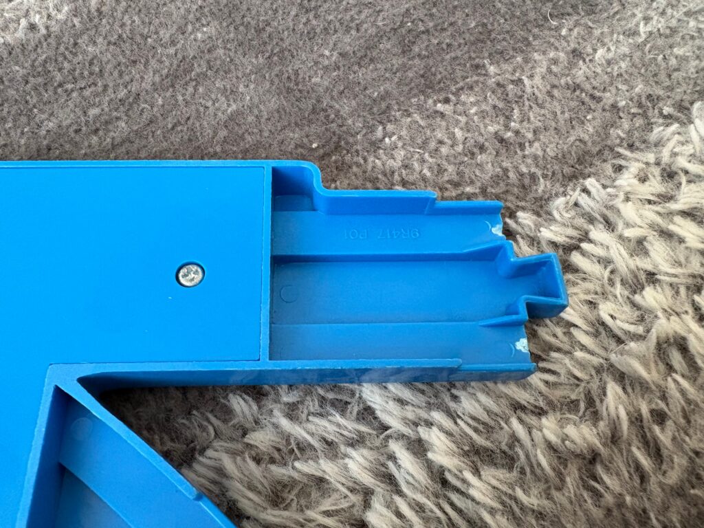 ↓自動ターンアウトレールはレール結合部分に爪があって、それで段差ができないようになっている。その爪が脆くて、我が家のものは完全に取れている。
